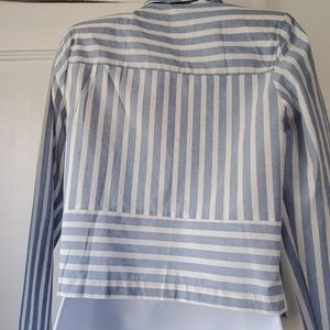 Blue and white stripe cotton blazer.
