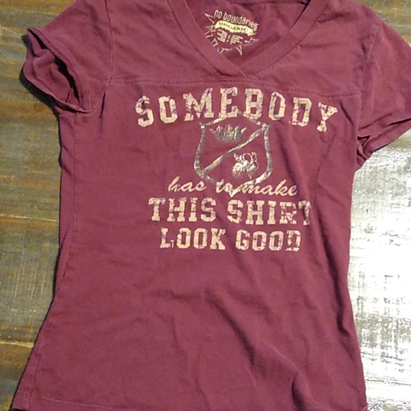 Red t-shirt with writing design