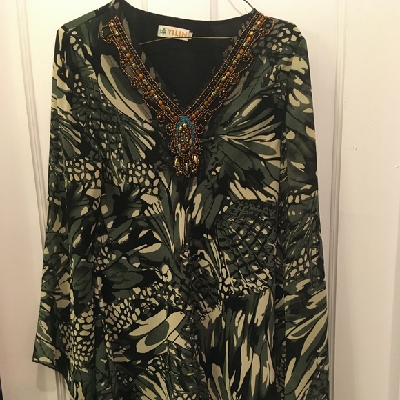 Black Tan and Green with Beads on the Neck front .