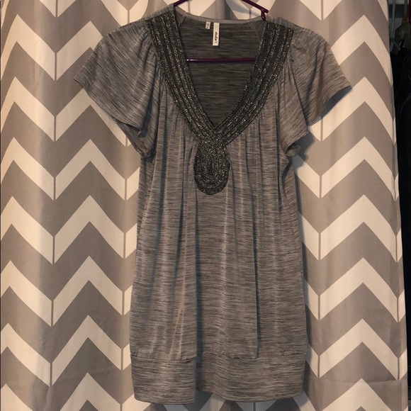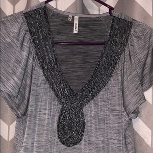 Fun beaded v-neck short sleeve top!