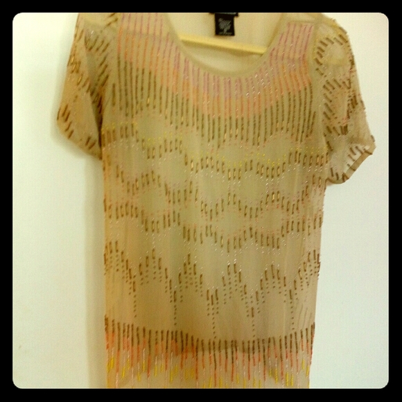 Sheer beaded multicolor front sheer back Short sleeves also beaded