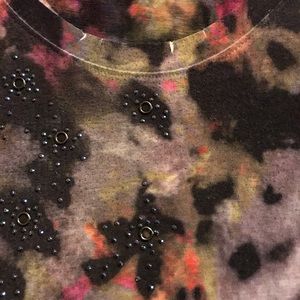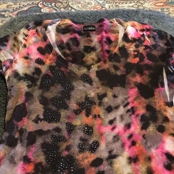 Multicolored with crazy design and small studs in design round neck.