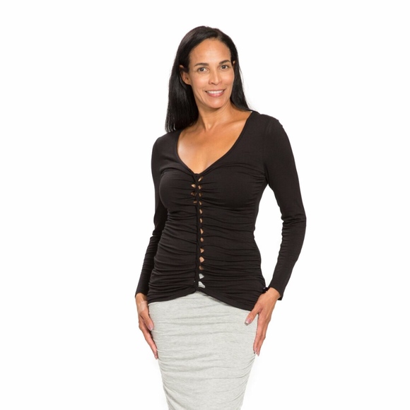 Reversible braided long sleeve black top. Wear Braid in front or back to get 2 different looks from one top. Super soft.