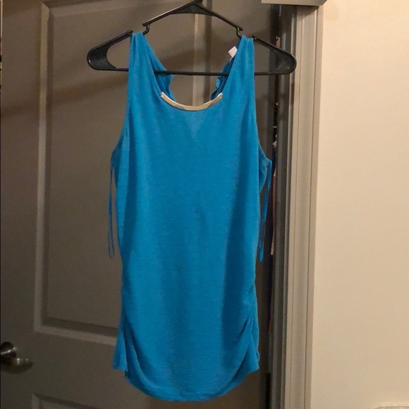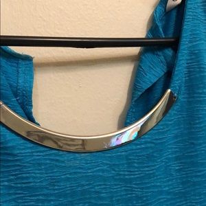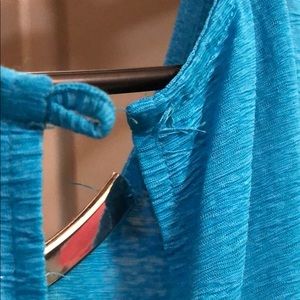Cute top for work. Slightly fitted but very stretchy material. **button missing*
