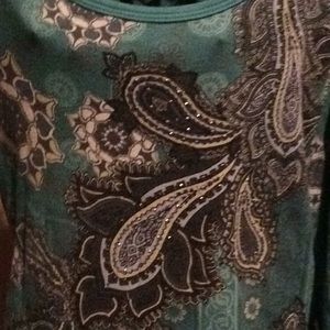 Susan Lawrence T-shirt material long sleeves turquoise, grey and wire design with a little sparkle