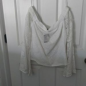 Lace off the shoulder w/ sheer sleeves