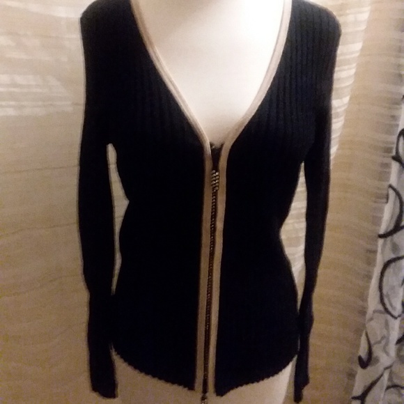 Bling zip.in front. Trimmed in tan. 75%viscose 25% polyester.