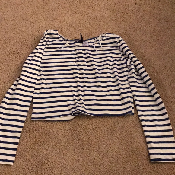 Navy blue and white crop top Tight- long sleeve Never worn- size large