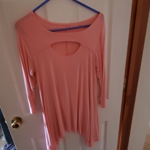 Long three quarter length sleeve. Light pink. Perfect for spring! Great with leggings! Gently worn.