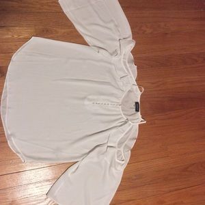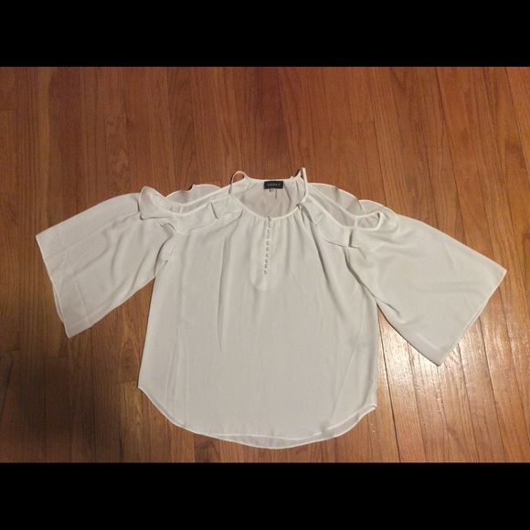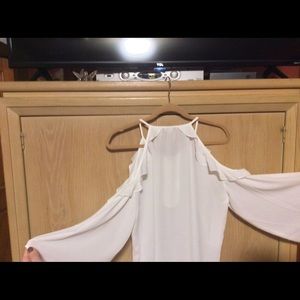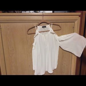 ⭐️White cold shoulder blouse with ruffles on shoulder and buttons half way down. No tag but never worn.