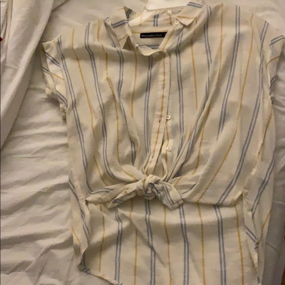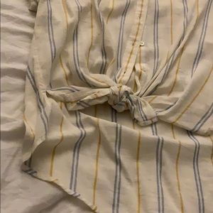 Button up/ tie in the front and long in the back top. Is a sheer top so will have need to wear something under it!