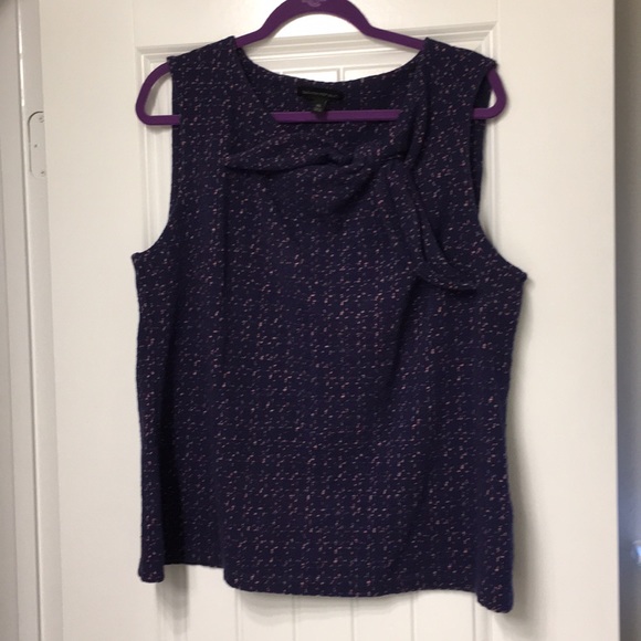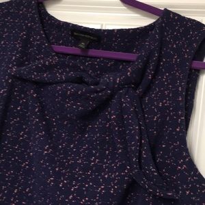 Capped sleeve banana republic blouse with built in bow navy with salmon pattern