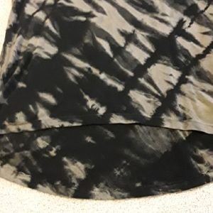 Soft black& gray. Shorter in front longer in back. Beaded neckline.