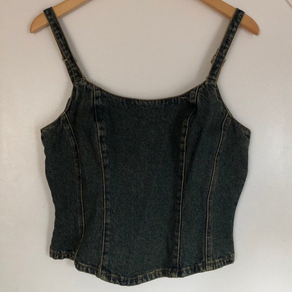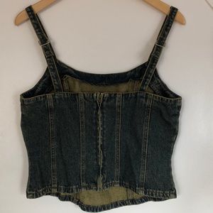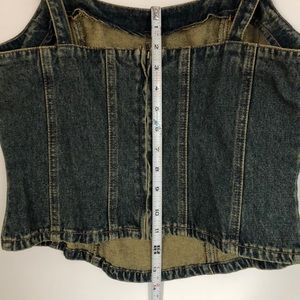 New - Denim bustiere style top with adjustable straps and 36” bust line.