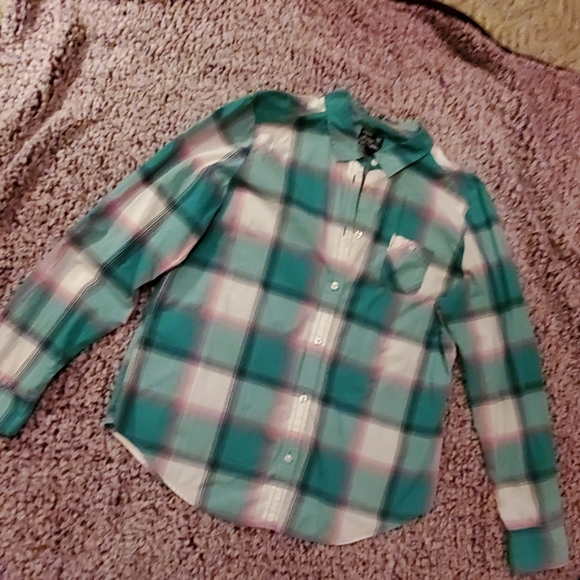 Super cute American Eagle Outfitters checkered pattern. button downs shirt, with front buttoned pocket on front left chest. Excellent condition. Measures. Underarm to underarm 21.5 inches. Shoulder to hem. 28 inches.