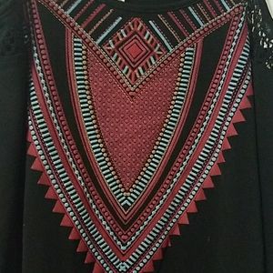 Scarf type top w à with artsy pattern.