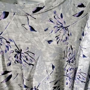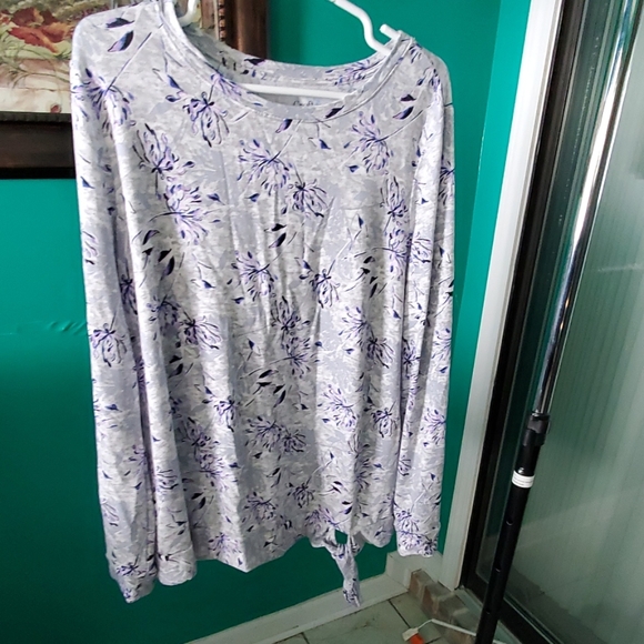 Gently worn. Long sleeve with tie bottom. 85 % rayon, 12% polyester, 4% spandex