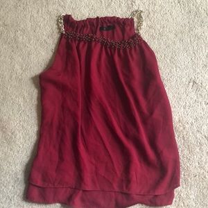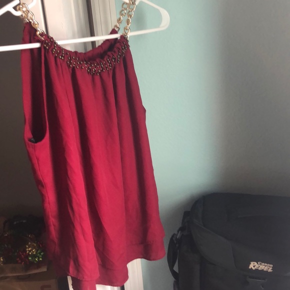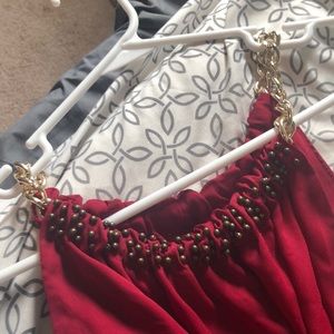 Dark red top with gold chains as sleeves