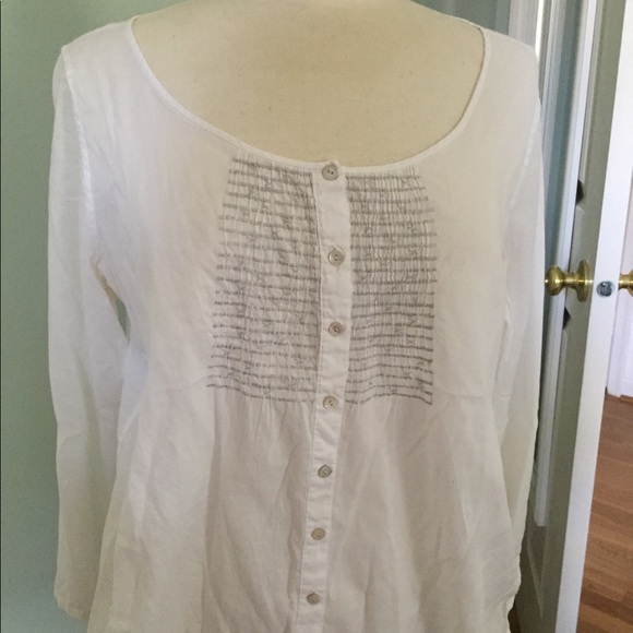 Sheer blouse with pretty gray brocade great with jeans!