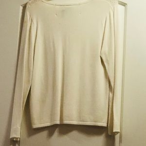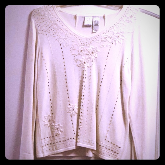 Thin material kinda sweater but more like a blouse. Beading design on front with beading, hardly worn very cute casual shirt