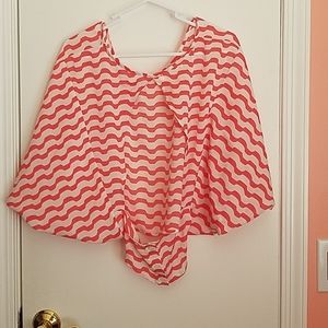 I am not sure it's cute with a tank underneath it's like a loose fitted crop top