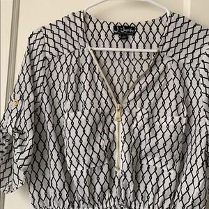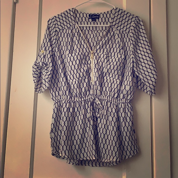 Shirt like top with V-neck zipper and buttoned up short sleeves