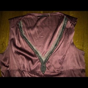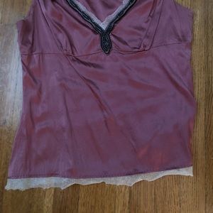 Mauve silk top w/lace & beading along the V neck, lace trim around bottom & a side zipper. Worn just a couple times.