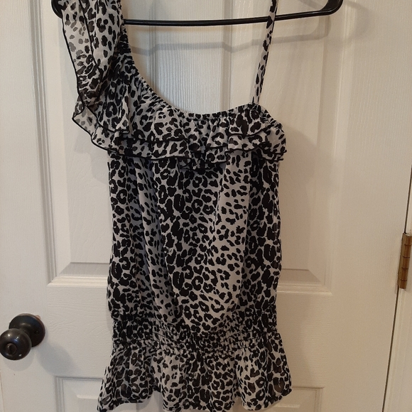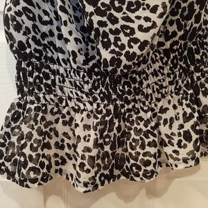 Very cute animal print black and white top. Fun party top. Elastic at the waist and loose around the tummy.
