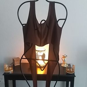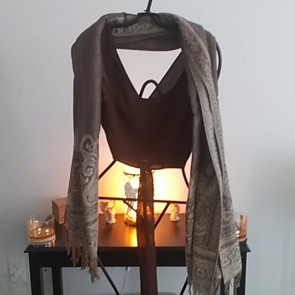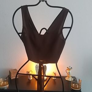Brown multi wrap top, polyester. Sexy alone, or over blouse