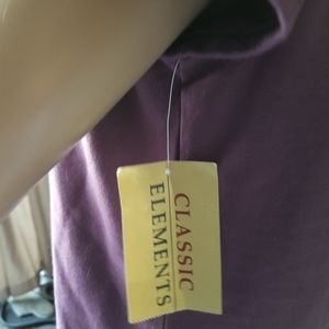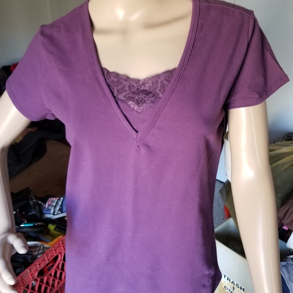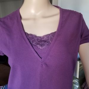 Brand- classic elements.. Short sleeve top with v neck lace.. Purple. 95%cotton 5% spandex