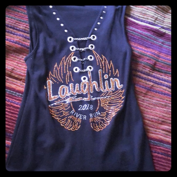 Laughlin river run 2018 tank top! Solid back, chain decal with bling bedding on the front. Never worn.