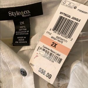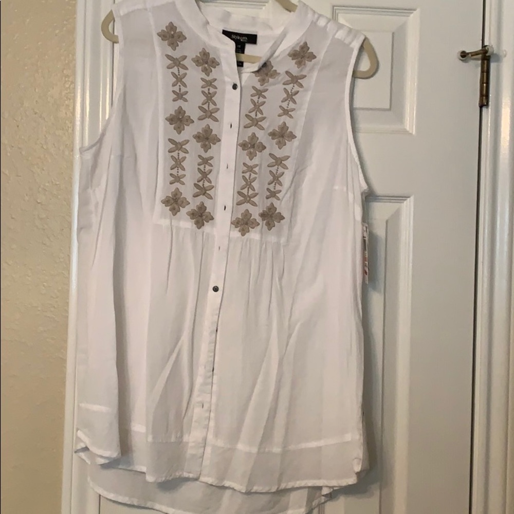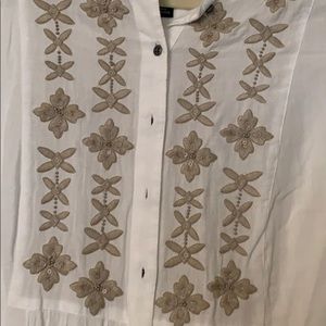White with tan sleeveless top. 100% cotton. Very cool and airy. Never worn.