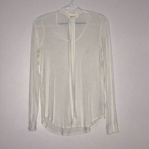 Off white dress shirt with a tie in the front.