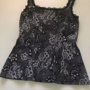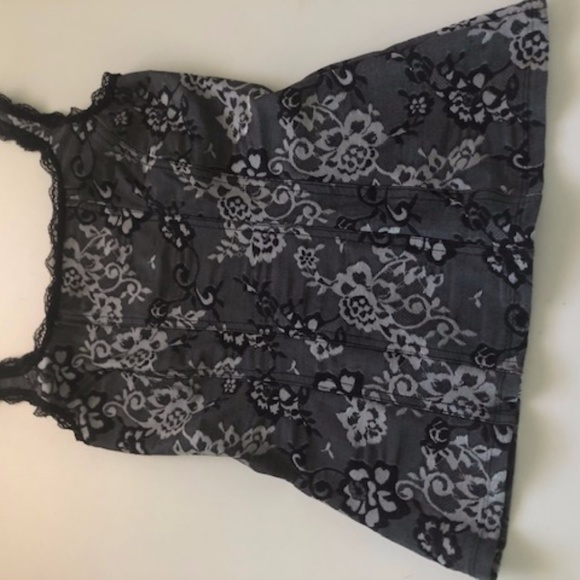 Nylon spandex fitted "corset" seamed. washable lace trim dress up or with jeans