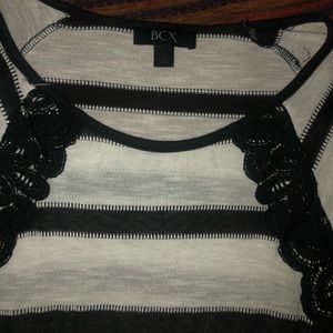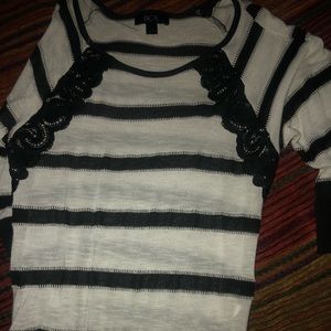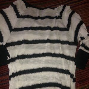 Cute sweater top, thin gently worn in, no stains or flaws. Solid black fitted waste, fitted sleeves. Super cute summer fit