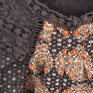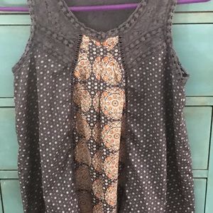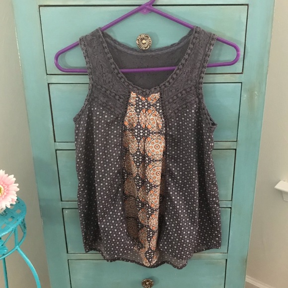 Airy, flowy, loose feel tank top shirt. Good used condition. Blue, whit and orange colors.