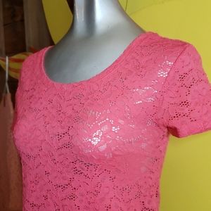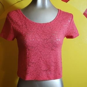 Beautiful, stretchy,coral lace crop top.Very comfortable and versatile.Wear it with skinny jeans or over a dress.Really pretty!