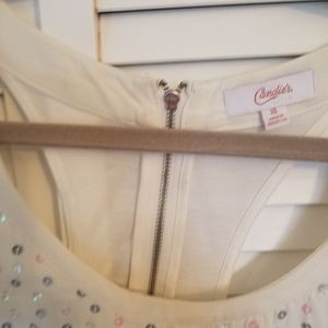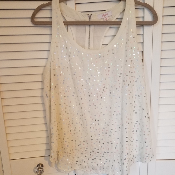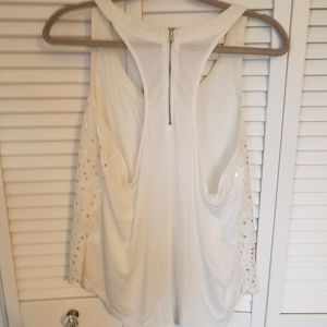 Off-white tank with iridescent sequin in front, Fabric and back, with zipper