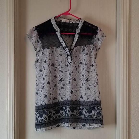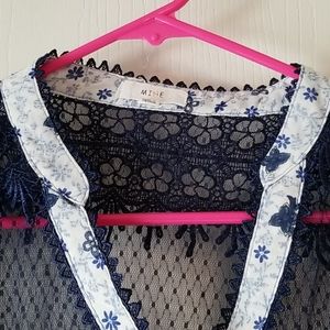 Beautiful white and navy blue with yellow accents lightweight with navy lace perfect for summer wear