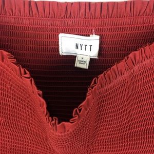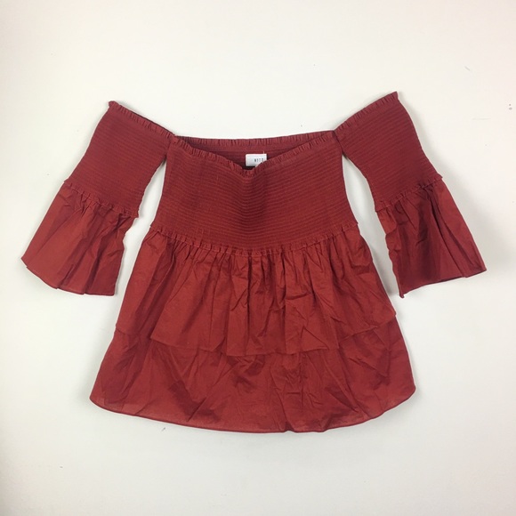 A super stylish new top, never worn ! Love the elastic dearies with the flare tier bottom