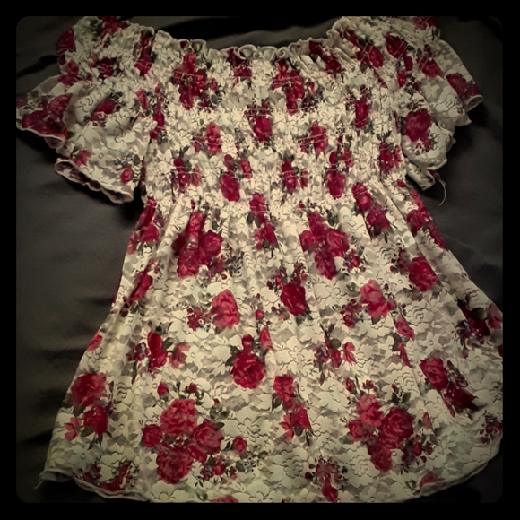 Off-the-shoulder, front + back are identical. It is very sheer so if you're not into that you can always wear a cami under this :)