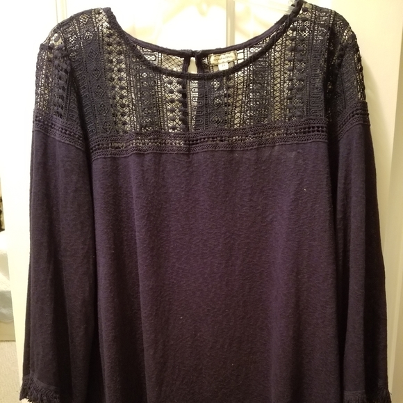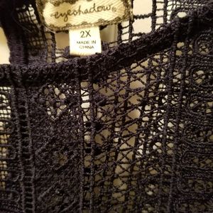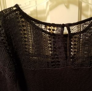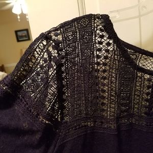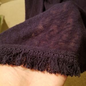 Lightweight navy blue top with fringe and stitched top. Super cute