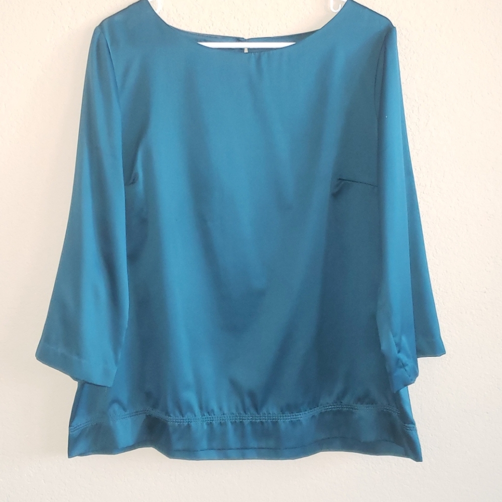 Merona, size XL. Really pretty dark emerald gree like color. Lots of compliments. Soft, light weight. Small flaw on arm (see pic 3) minimal- price will reflect.