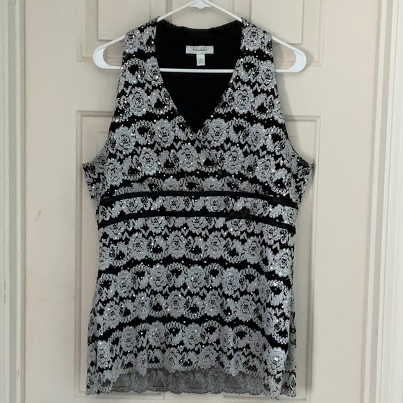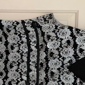 This is a beautiful silver top that goes under a jacket or where Loan has some sparkles on it with a trim line under the breast