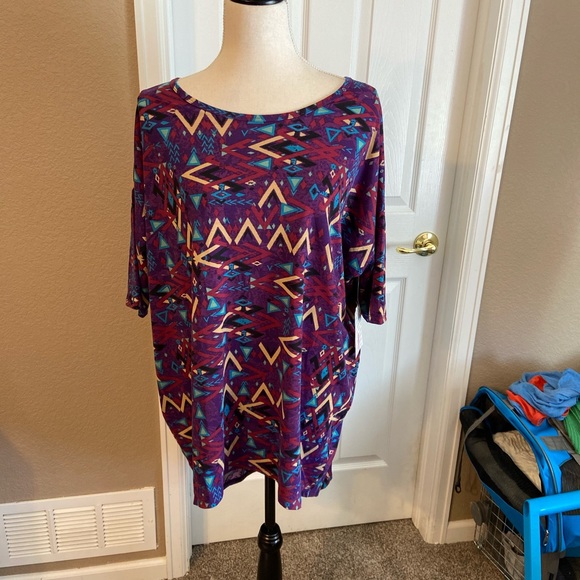 This pretty lularoe “Irma”top goes nicely with leggings jeggings, Ankle pants or jeans. Very colorful for Easter