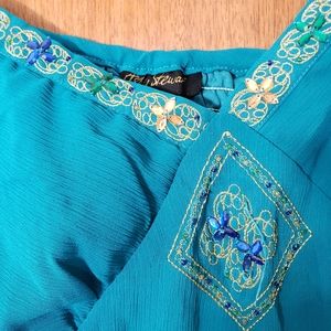 Size 22/24w. Blueish green jeweled top.