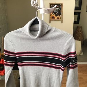 Turtle neck sweater in gray with red and black stripe