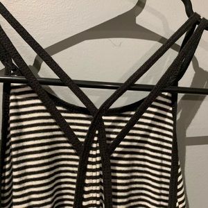Black and whit stripped top. Razor back top that flows down. Worn only a couple times. Super comfortable and stretchy.