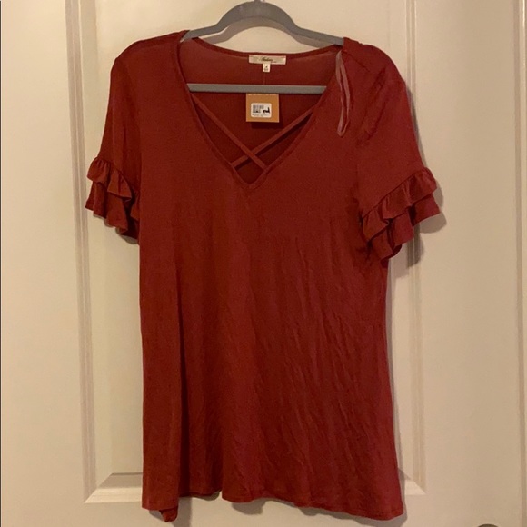 Super cute casual top The top and the sleeves are precious Fits more like a small Never worn