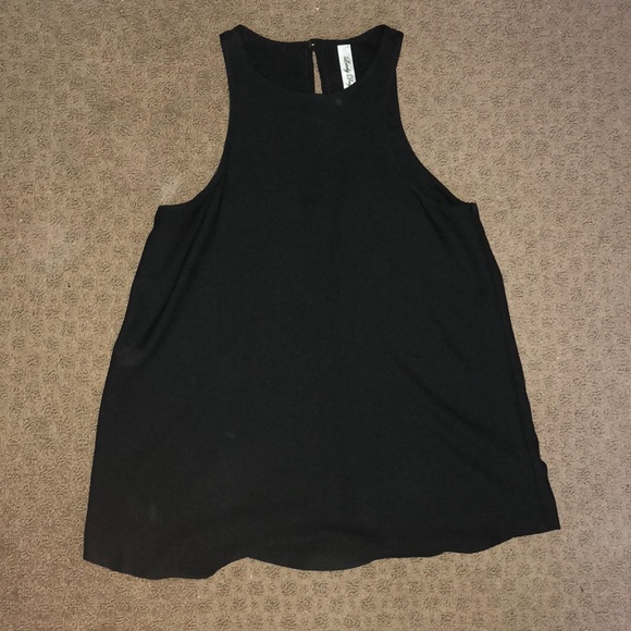 Black, flowy tank top, buttons in the back, high neckline